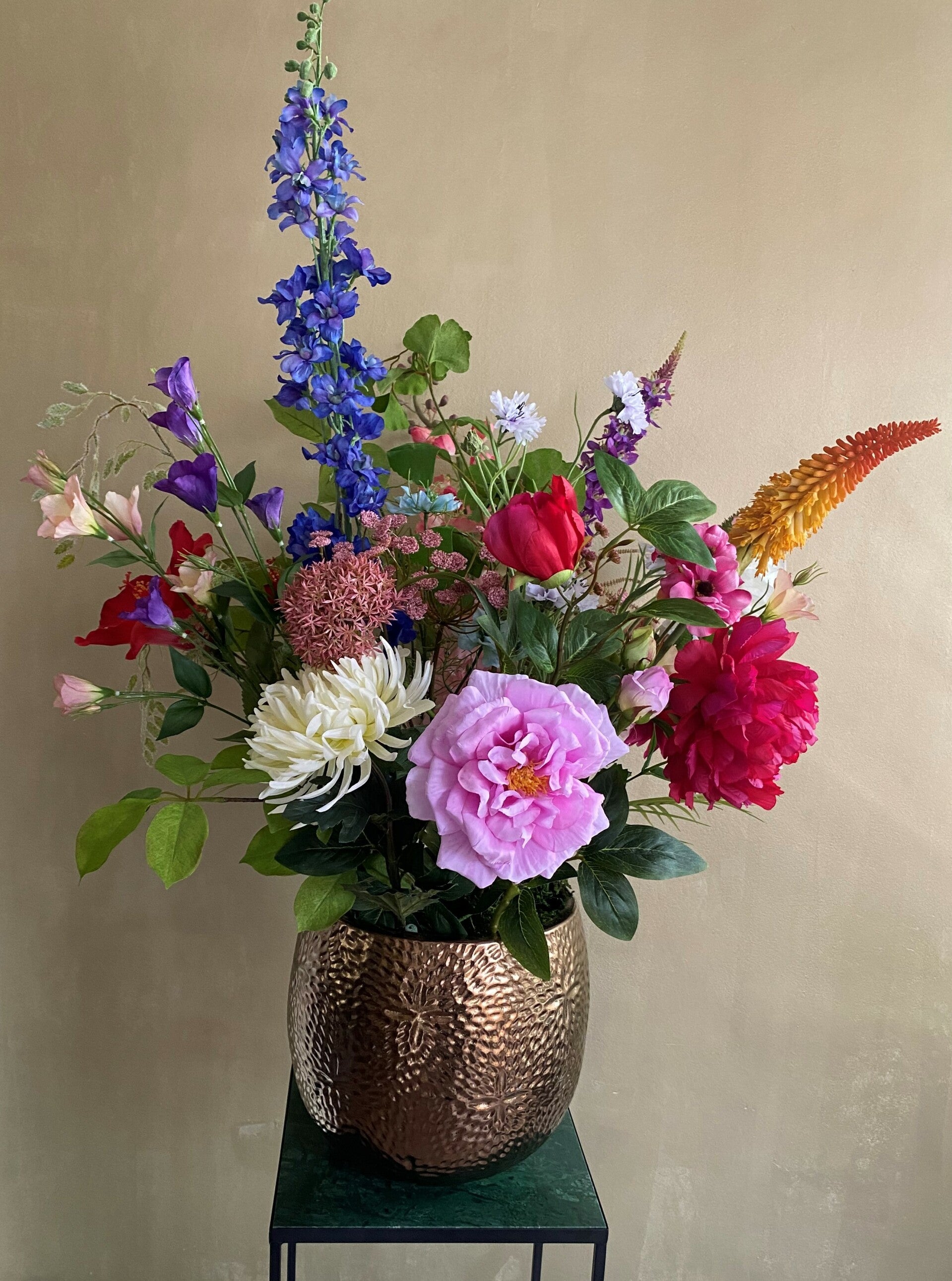 Boeket Flower Bomb is een fantastische eyecatcher en is tijdelijk verkrijgbaar voor € 295,- (inclusief pot Bronze)