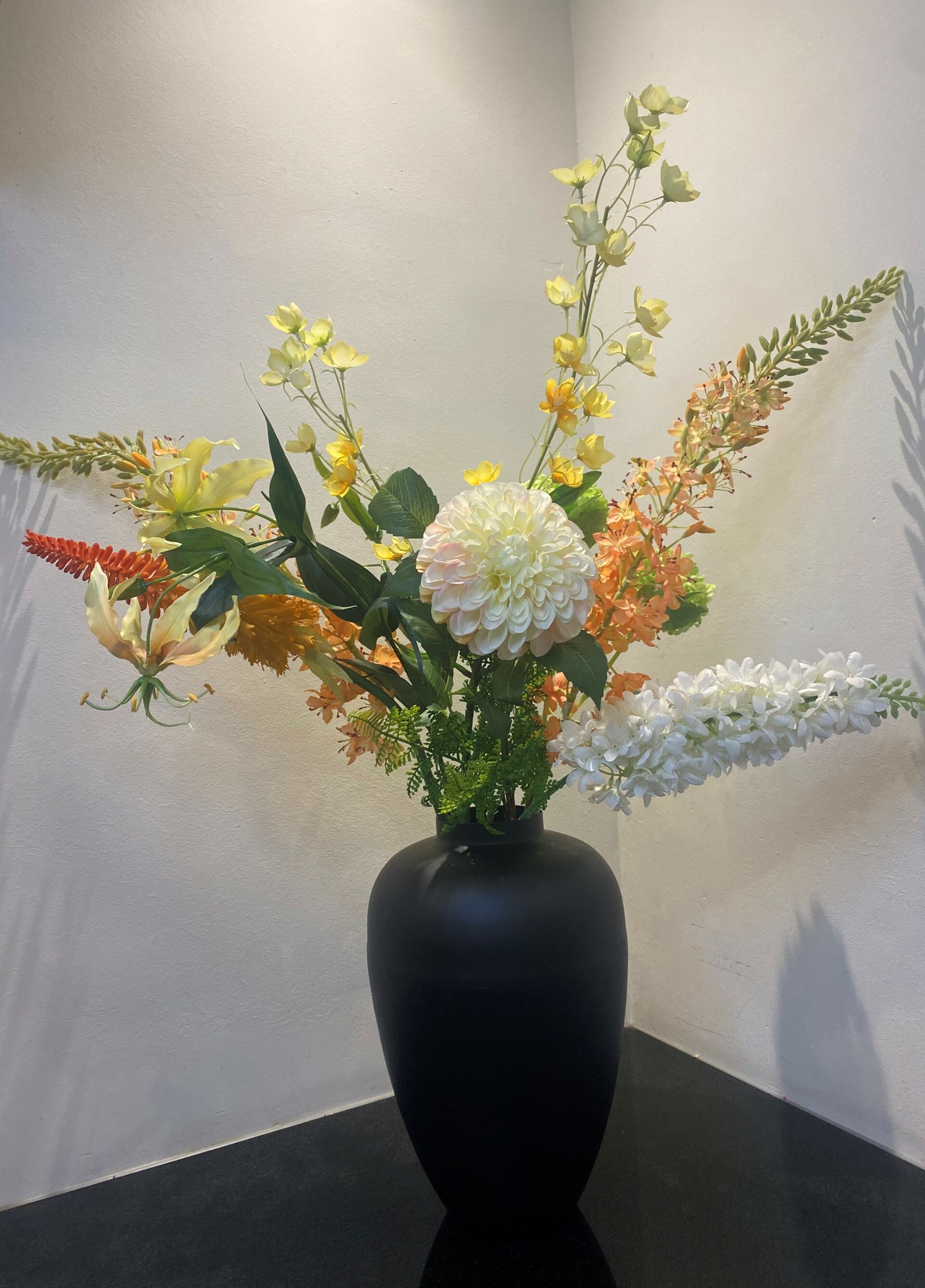 Alle zijden bloemen zijn van de hoogst mogelijke kwaliteit. Een prachtig vol boeket waar je lang plezier van zal hebben.